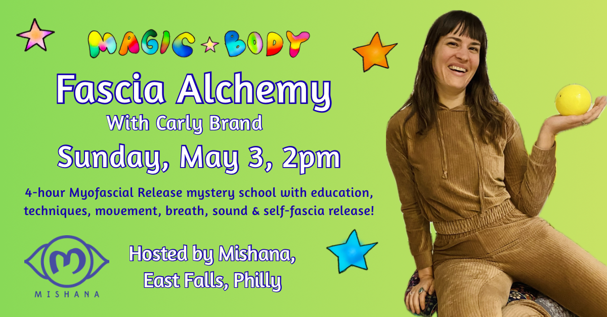 Join Carly on May 3rd for an in-person myofascial release workshop and sound healing at Mishana Yoga, East Falls PA